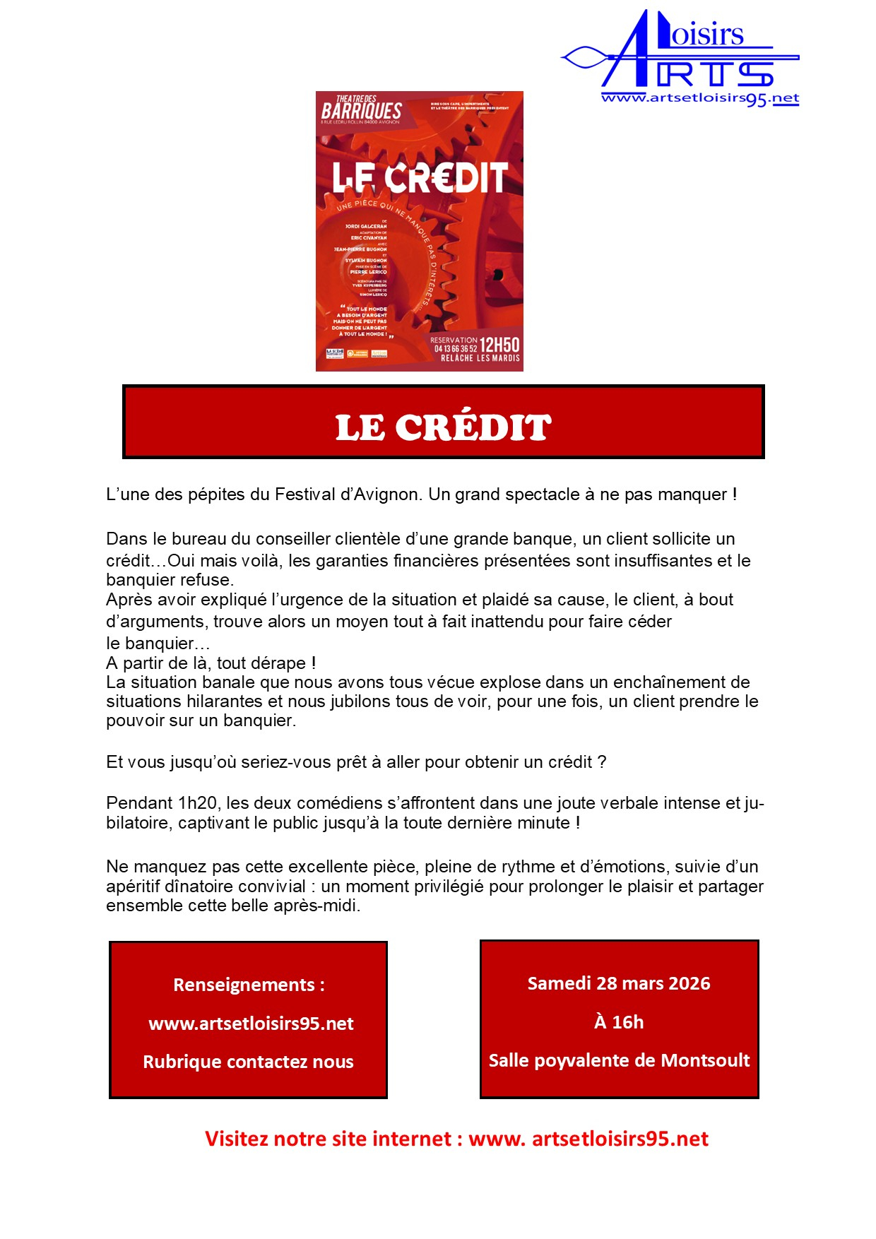 Samedi 28 mars 2026 Salle polyvalente de Montsoult Continue Reading Précédent les Fantaisies MusicalesSuivant Exposition 2026