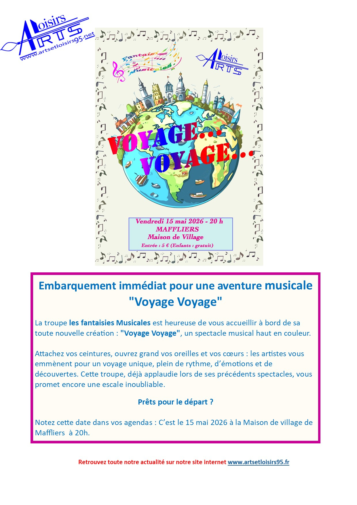 Vendredi 15 mai 2026 Maison de Village - Maffliers Continue Reading Précédent Saveurs de GuédelonSuivant Exposition de Peinture 2026